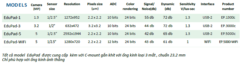 Máy tính bảng dòng EduPad với màn hình 8,9 inch có thể được cung cấp với camera 1,3 MP, 3,2 MP, 5 MP hoặc dòng WiFi. Cùng với phần mềm Image Focus 4 hoặc Image Focus Alpha, cung cấp giải pháp tiên tiến, hiện đại về kính hiển vi lĩnh vực giáo dục