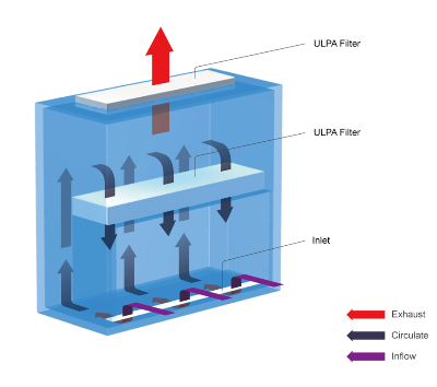 - Loại bộ lọc: Bộ lọc ULPA U15 tiêu chuẩn có khung nhôm, ISO Class 3 loại bỏ 99,9999% các hạt, Class 10 tuỳ chọn- Bộ lọc PTFE ULPA.